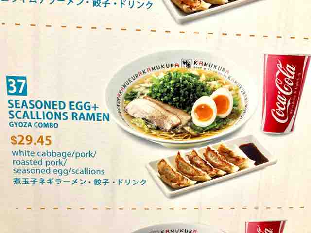 ネギにチャーシューと煮玉子は、どこにでもありそうなラーメンだ。これに餃子とドリンクが付いている。写真はネギが多めのラーメンセットだが、チャーシューが多いラーメンの値段は32.95ドル、現在の為替換算で消費税を加算すると何と4,589円となる。レストランだったら、これに20%のチップを加算して5,000円超えとなる。