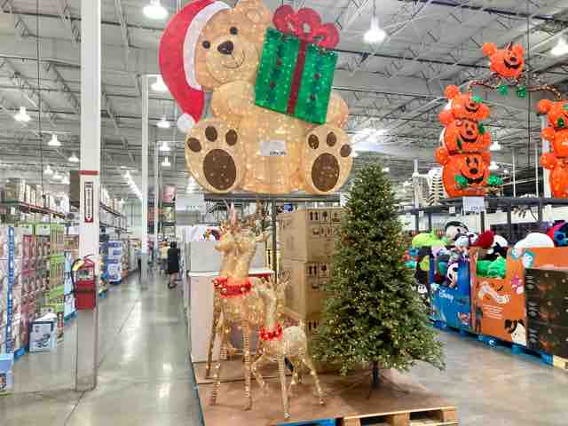 会員制スーパーのコスコに行ってきた。今月末のハロウィーン用品の横には、次のビッグイベントのクリスマス用品が並んでいる。クリスマスツリーの電飾が点滅し、電飾の巨大なサンタ熊にトナカイの親子が販売されている。