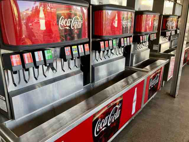 この変更は7月から順次実施されており、店舗の多くでは既に切り替えがかわりコカ・コーラとなっている。秋までには全店でコカ・コーラに切り替えられる。ホットドッグを購入するとドリンクが付いてくるが、以前はドリンク単品の販売はなかったが数年前からドリンクだけの購入も可能になった。