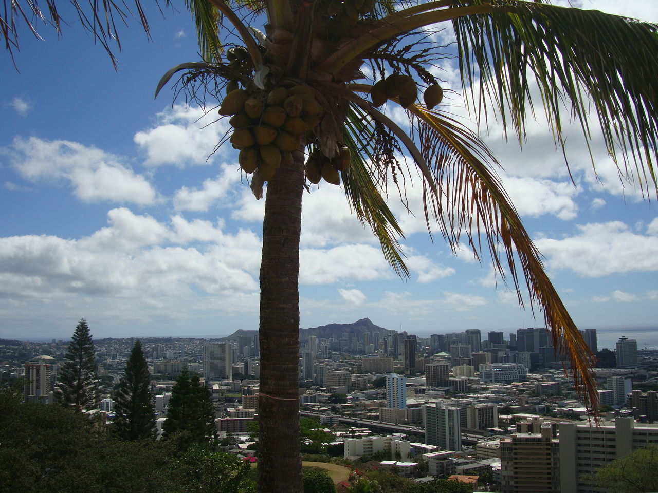 アロハスタジアムを過ぎてダウンタウンに向かうモアナルア・フリーウェイ(78)がレッドヒルに入る坂道の前方右に、一寸した丘がありその先にダウンタウンの高層ビルが見えてきます。