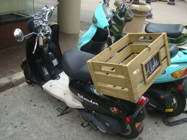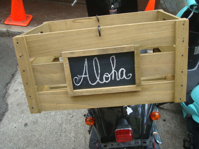 手作りの荷台の箱にはチョークで「Aloha」の文字が書かれています。営業用のモペッドなのか個人のものなのかは判断できませんが、世界に一つしかないオリジナルの箱に思わずカメラを向けたのでした。