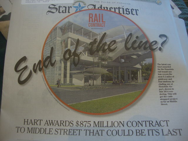 今日の朝刊にも驚く事実が紹介されています。カポレイとアロハスタジアム間の建設後の5.2マイルの路線建設を請け負う会社がまだ決まっていないのです。これから入札が始まって決定されるのです。3社の入札額が公開されていますが、その3社が僅差の入札かと思えば、3社の最低額と最高額には2倍の開きがあります。