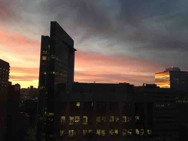 今日は朝焼けと夕焼けを見ることができた。この冬一番と思わせる朝焼けのきれいなこと。思わず足を止め、オレンジ色に染まった東の雲の刻々と変っていく朝焼けを見つめていた。