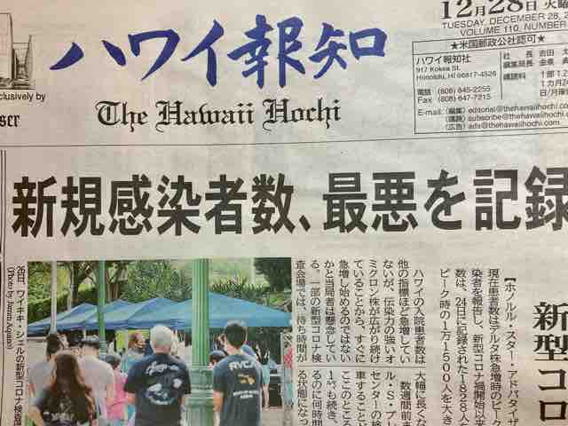 今日(2日前)のハワイの新たな感染者は5,911人、オアフ島で3,901人、ハワイ島で567人、マウイ島996人、カウアイ島276人、モロカイ島43人、ラナイ島28人。これまでの感染者数の合計は190,678人。新たな死亡者は9人、死亡者合計は1,135人。ワクチン2回接種率は75.4%。3回は31.1%。