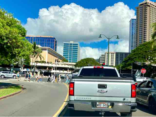 どちらの通りも一方通行でありながら、車両と車両の交通事故がよく起こる。私もよく利用する交差点だが事故が多発する理由がよくわからない。広い両車線のヌアヌ通りから狭い一方通行に変わり、たとえ前方が青信号でもスピードを落とさなけれならない地点だ。