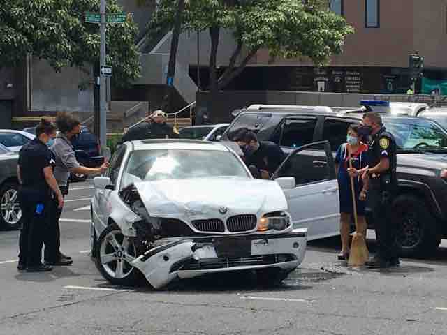 ほとんどが信号無視と赤信号で左折する際の不注意が原因なのだろう。一方通行のベレタニア通りから赤信号でヌアヌ通りを左折する車が、スピードを出して青信号で直進する車と衝突するように想像できる。歩行者を巻き込む事故がないのが幸いだ。