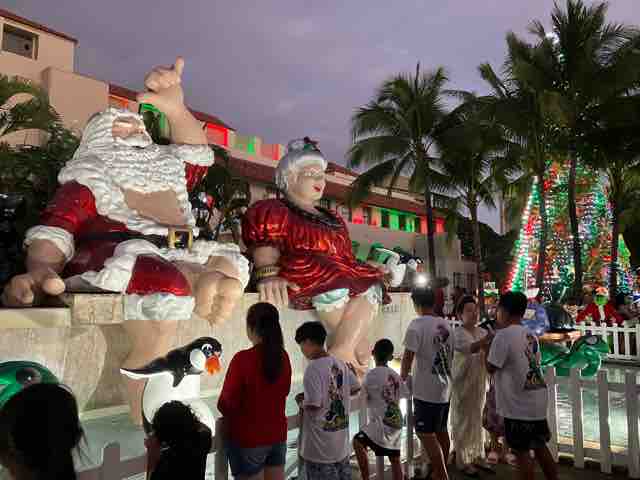 市庁舎前のクリスマスツリー周辺の椰子の木がずいぶん育ち、ツリーの電飾がはっきり見にくくなったのが残念だ。今年のホノルル・シティライツは分散して一箇所で落ち着いて見られない。電飾のトンネルなどがブレイズデール・ホール前のトーマススクウェアに移動している。