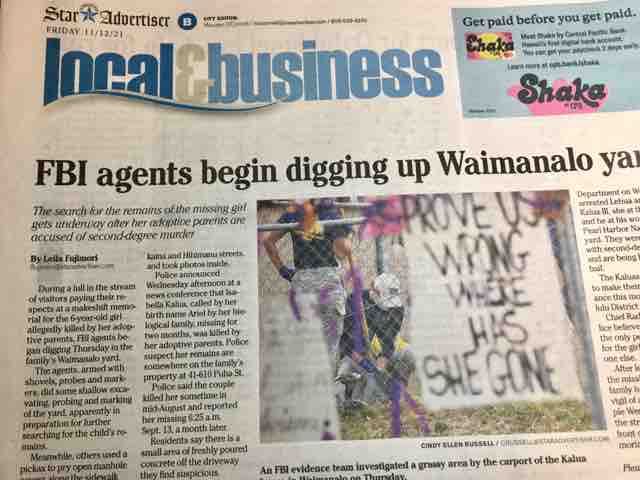 その翌日に養父は、コロナに感染したようだと連絡して仕事を2日半休んでいる。その間に、死亡した6歳の少女の遺体を処分した模様だ。FBI捜査官は遺体を探すため、昨日から家族が住んでいた家の庭の発掘を始めている。また周辺のマンホールの調査も進めている。