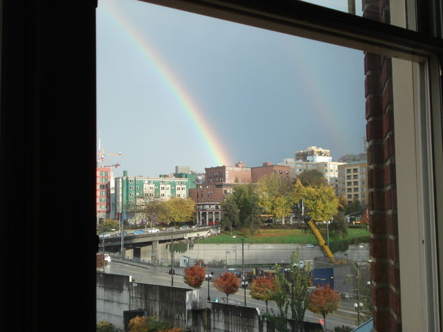 ハワイで見慣れているレインボーに負けないほど鮮明なレインボーがシアトルで見られるとは思ってもいなかった。6歳までシアトルで育った妻は、シアトルではこん綺麗なレインボーを見た覚えはないと言って、レインボーが消えるまで見入っていた。