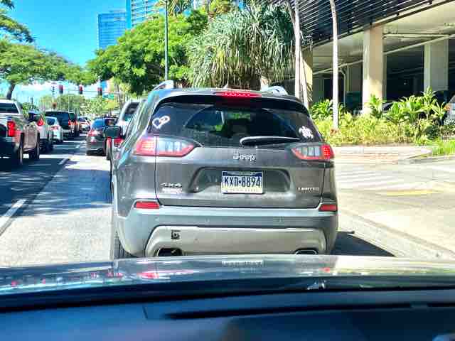 パールハーバーの駐車場でロードアイランド州のライセンスプレートを付けた車を見つけた。出ていく人もいれば、ハワイにやって来る人もいる。パールハーバーなので、ハワイにやって来た軍人の車なのだろう。日本人の中には、ロードアイランド州の名前を初めて聞いた人もいるだろう?